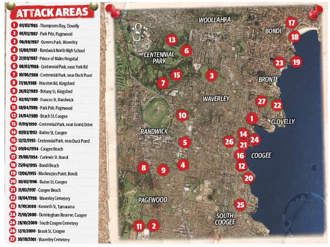 NSW police have linked 31 sexual assaults in Sydney over 16 years to one man who died in February. The Beast of Bondi 2010. 13 - Bondi August 29 1994.